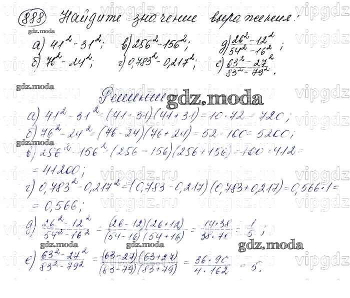 ОТВЕТ на задание № 888 Учебник по Алгебре 7 класс Макарычев