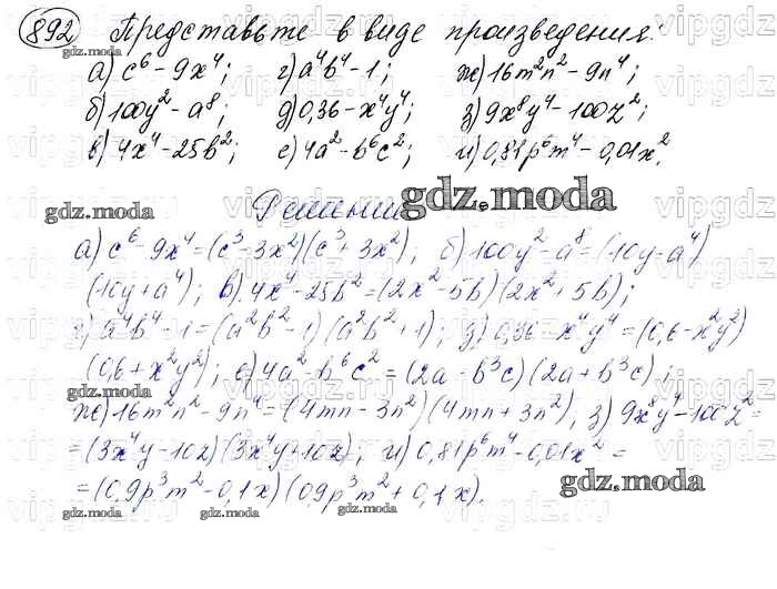ОТВЕТ на задание № 892 Учебник по Алгебре 7 класс Макарычев