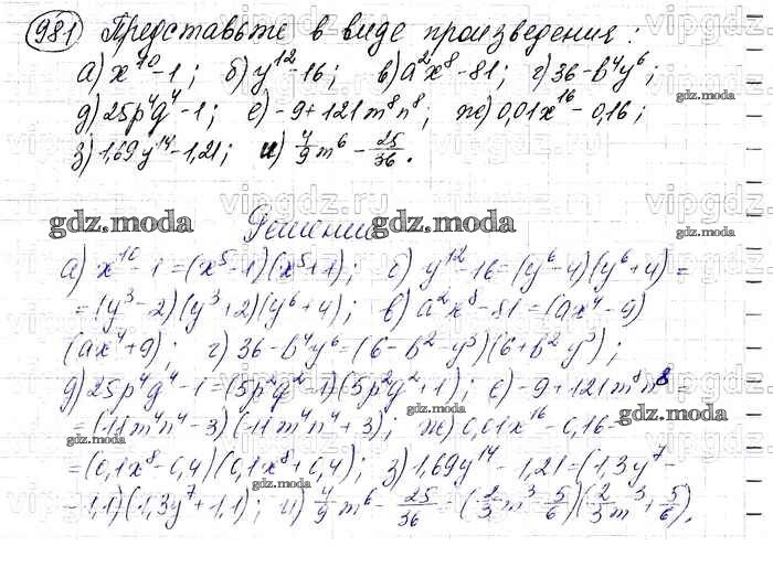ОТВЕТ на задание № 981 Учебник по Алгебре 7 класс Макарычев