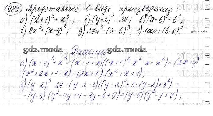 ОТВЕТ на задание № 989 Учебник по Алгебре 7 класс Макарычев