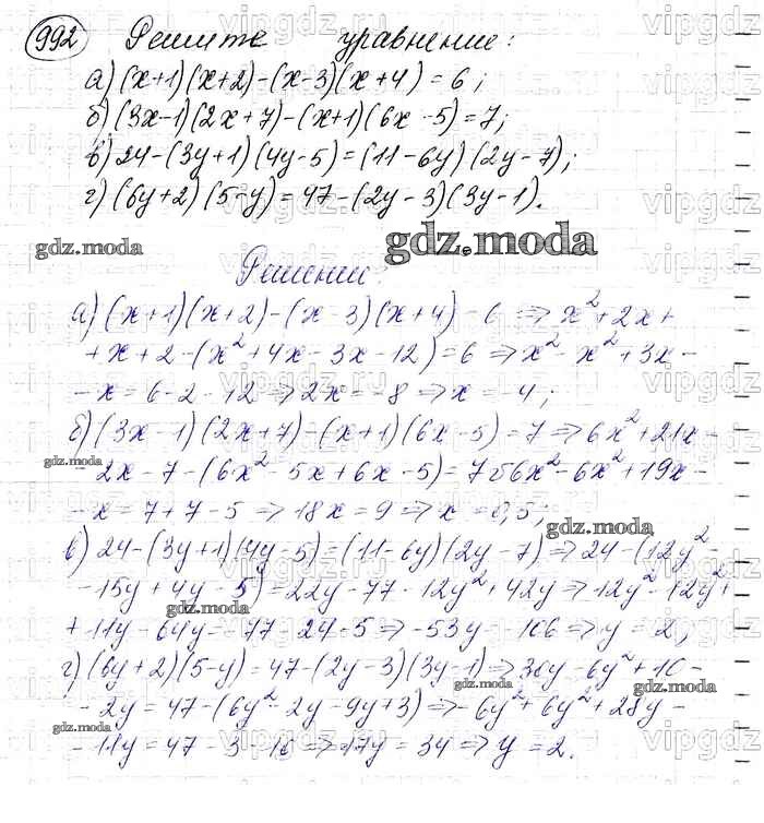 ОТВЕТ на задание № 992 Учебник по Алгебре 7 класс Макарычев