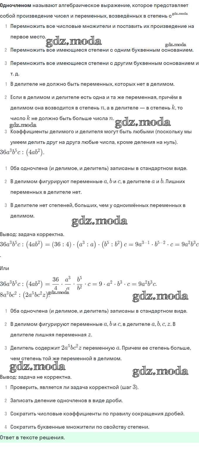 ГДЗ решение к заданию № 1 Алгебра 7 класс Мордкович А.Г. Мнемозина 2013 Часть 1 Базовый уровень ФГОС бесплатно на гдз.мода!