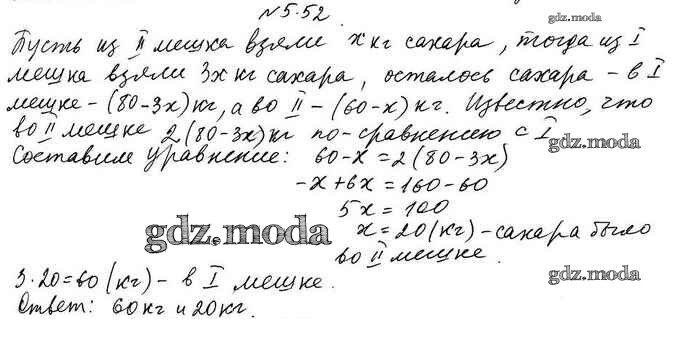ОТВЕТ на задание № 5.52 Учебник по Алгебре 7 класс Мерзляк Алгоритм успеха Углубленный уровень