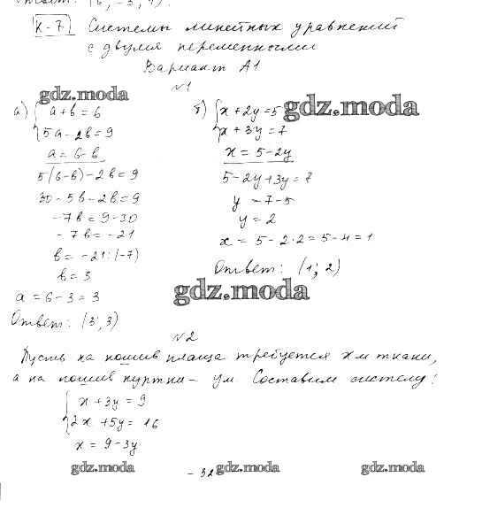 ОТВЕТ на задание № вариант А-1 Самостоятельные и контрольные работы по Алгебре 7 класс Ершова