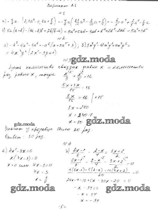 ОТВЕТ на задание № вариант В-1 Самостоятельные и контрольные работы по Алгебре 7 класс Ершова