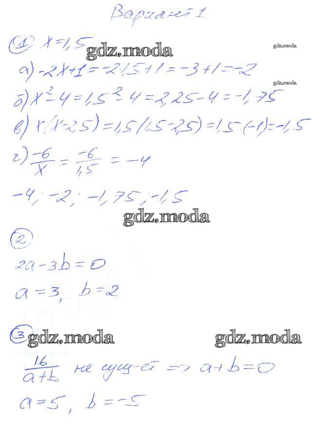 ГДЗ решение к заданию № вариант 1 Алгебра 7 класс дидактические материалы Евстафьева Л.П. Просвещение 2018 ФГОС бесплатно на гдз.мода!