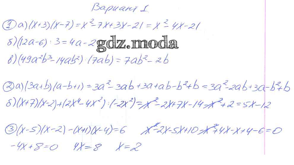 ОТВЕТ на задание № 1 Дидактические материалы по Алгебре 7 класс Зив