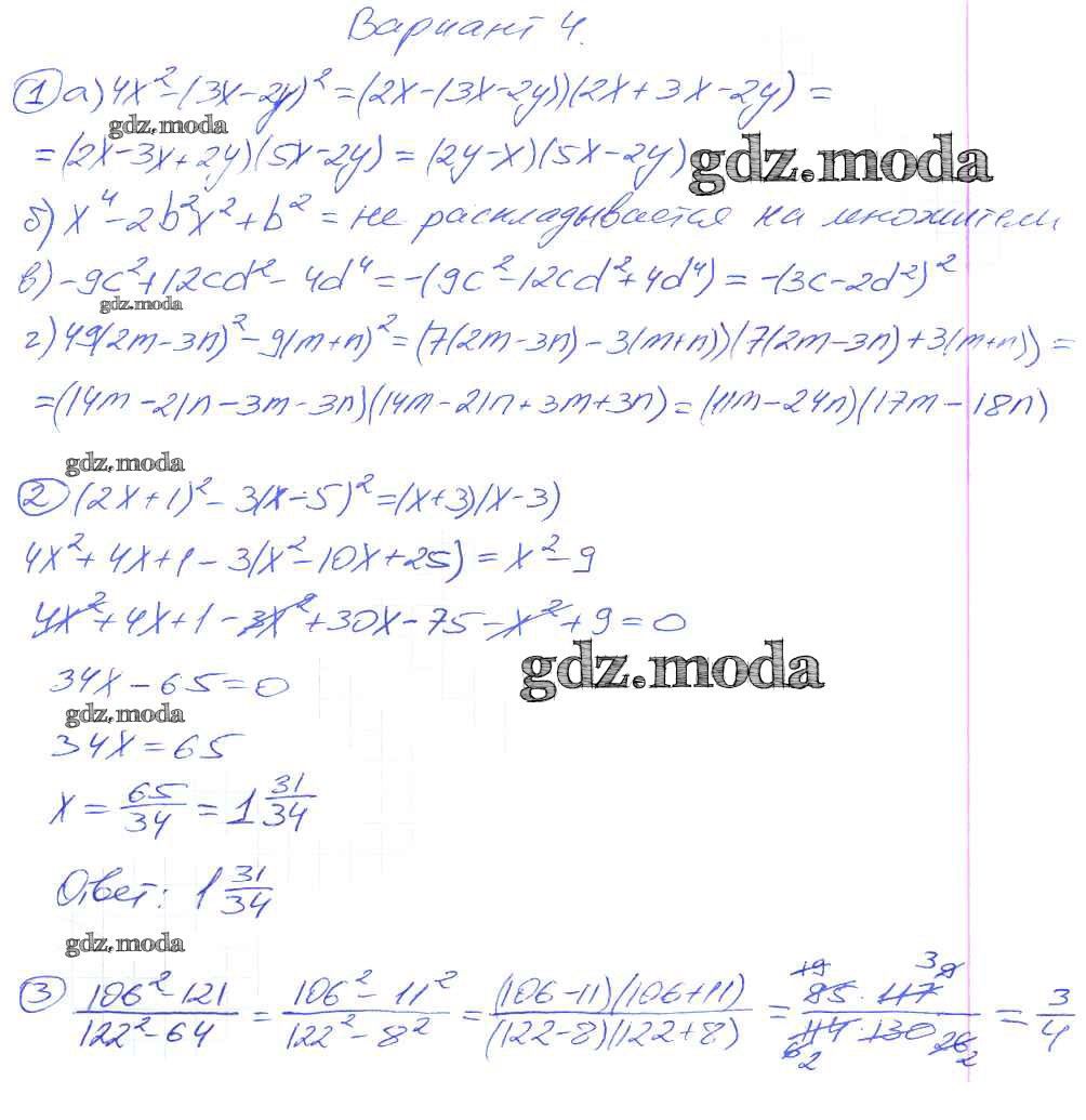 ОТВЕТ на задание № 4 Дидактические материалы по Алгебре 7 класс Зив