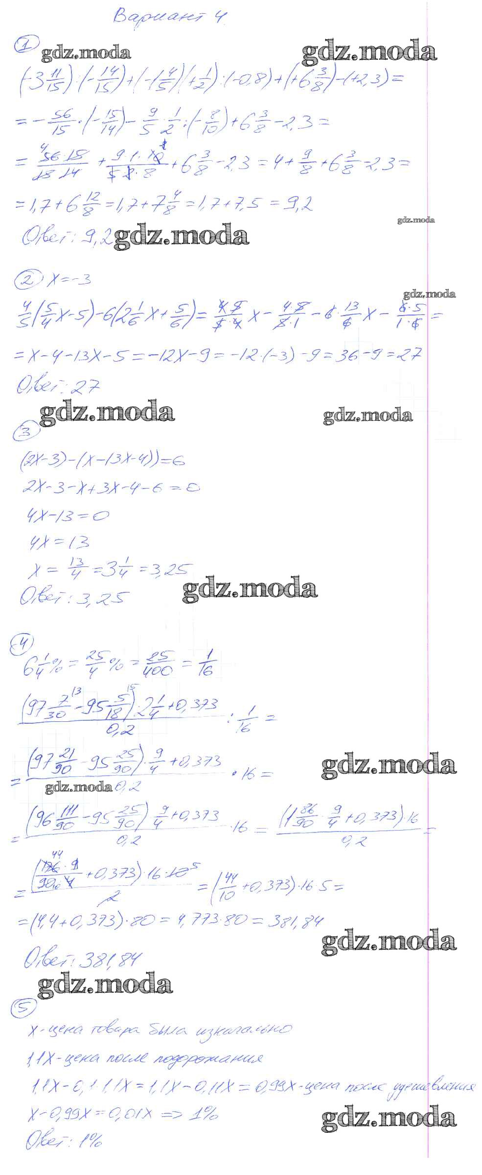 ОТВЕТ на задание № 4 Дидактические материалы по Алгебре 7 класс Зив