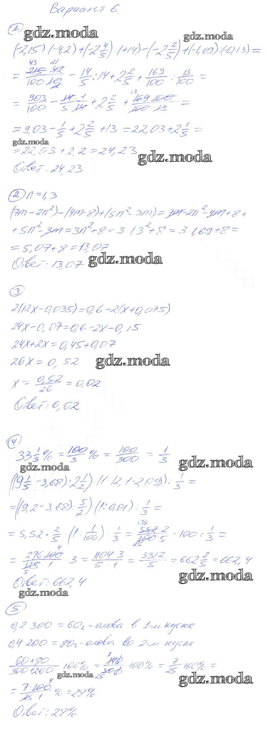ОТВЕТ на задание № 6 Дидактические материалы по Алгебре 7 класс Зив