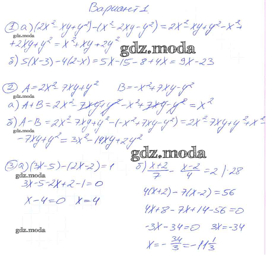ОТВЕТ на задание № 1 Дидактические материалы по Алгебре 7 класс Зив