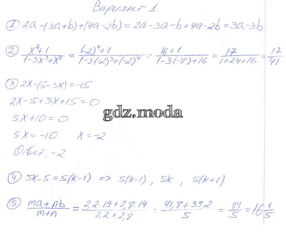 ОТВЕТ на задание № 1 Дидактические материалы по Алгебре 7 класс Зив
