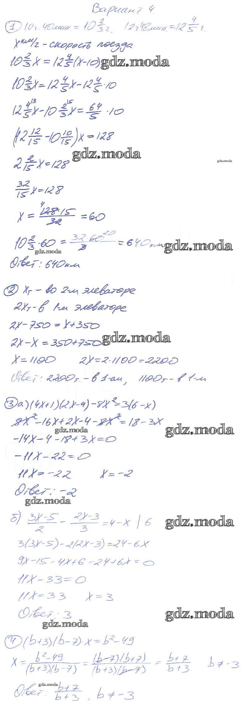 ОТВЕТ на задание № 4 Дидактические материалы по Алгебре 7 класс Зив