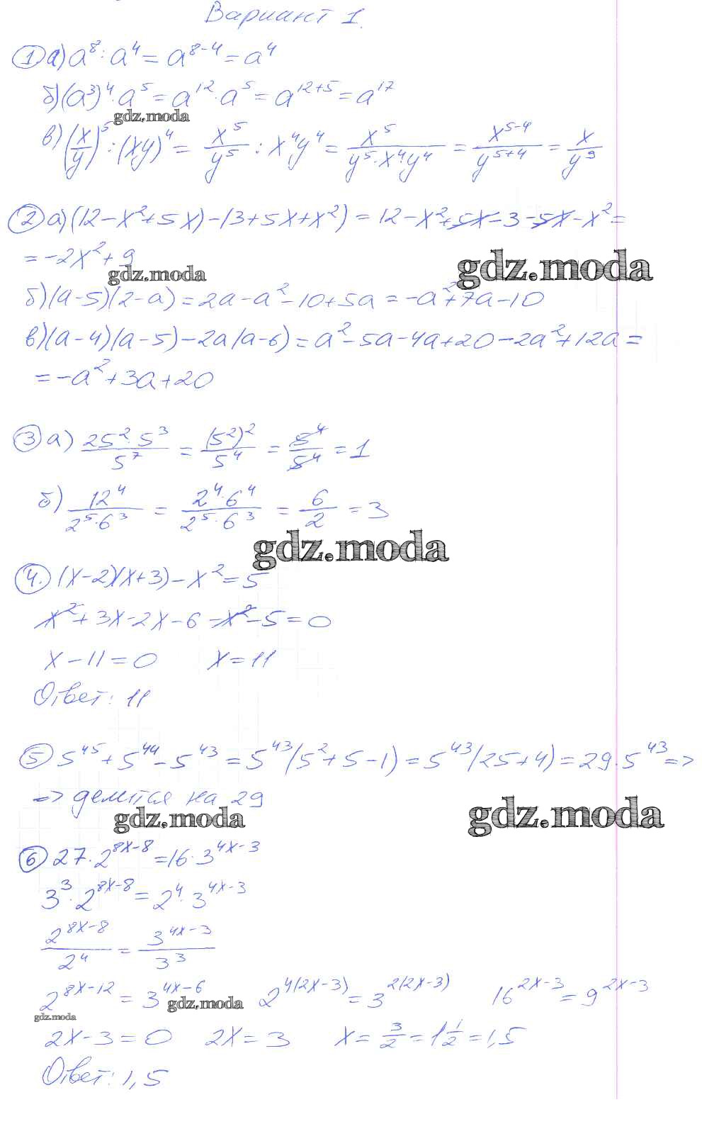 ОТВЕТ на задание № 1 Дидактические материалы по Алгебре 7 класс Зив