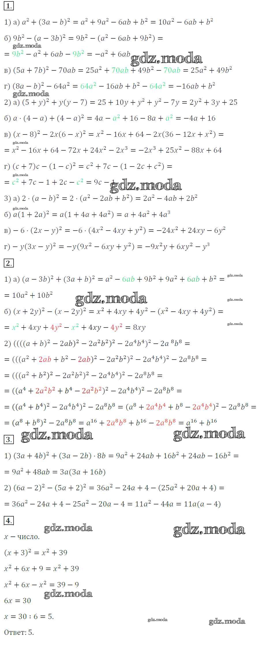 ОТВЕТ на задание № С-38. Преобразование выражений с применением формул квадрата суммы и квадрата разности Дидактические материалы по Алгебре 7 класс Звавич