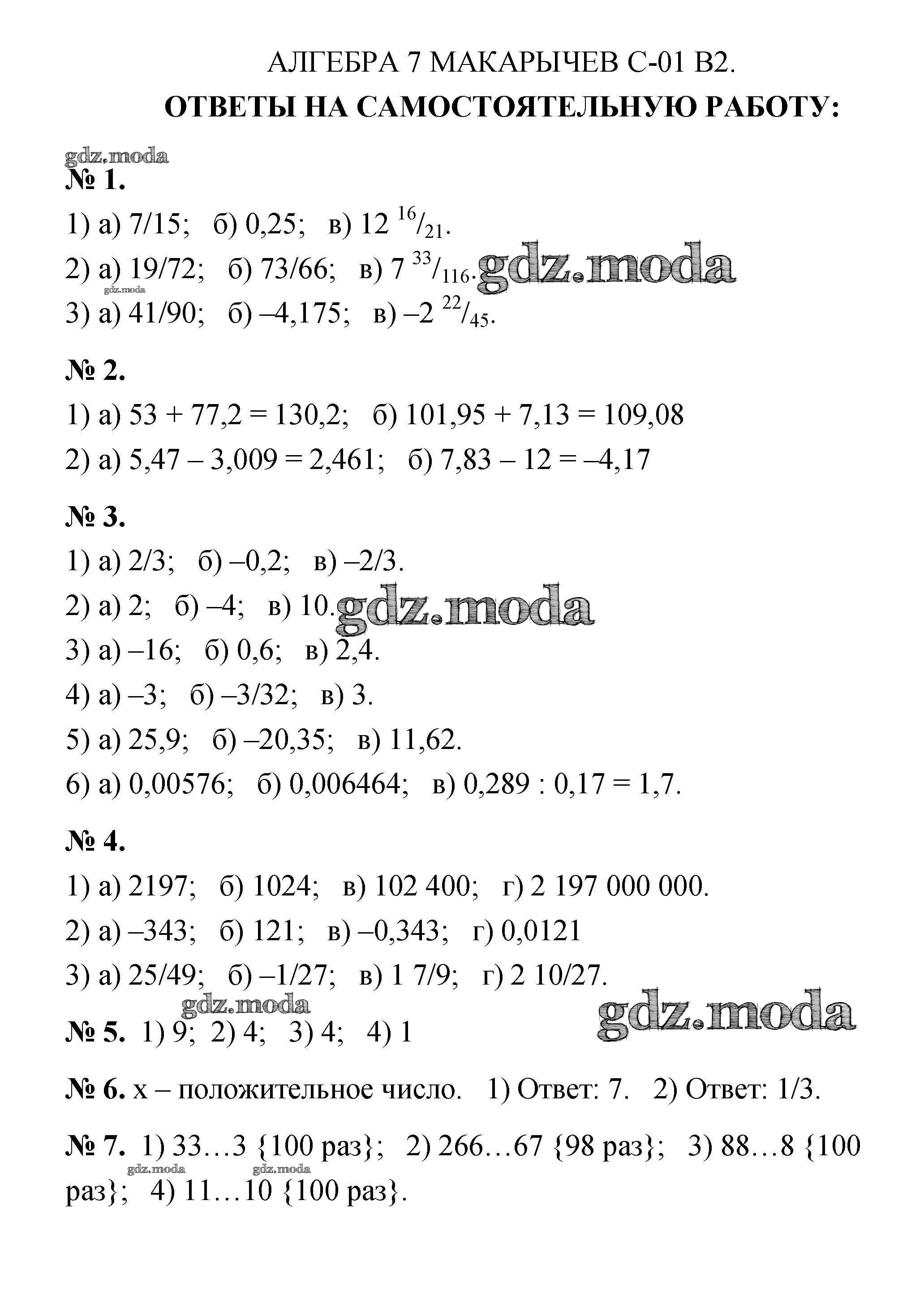 ОТВЕТ на задание № С-1. Вычисление значения числового выражения Дидактические материалы по Алгебре 7 класс Звавич