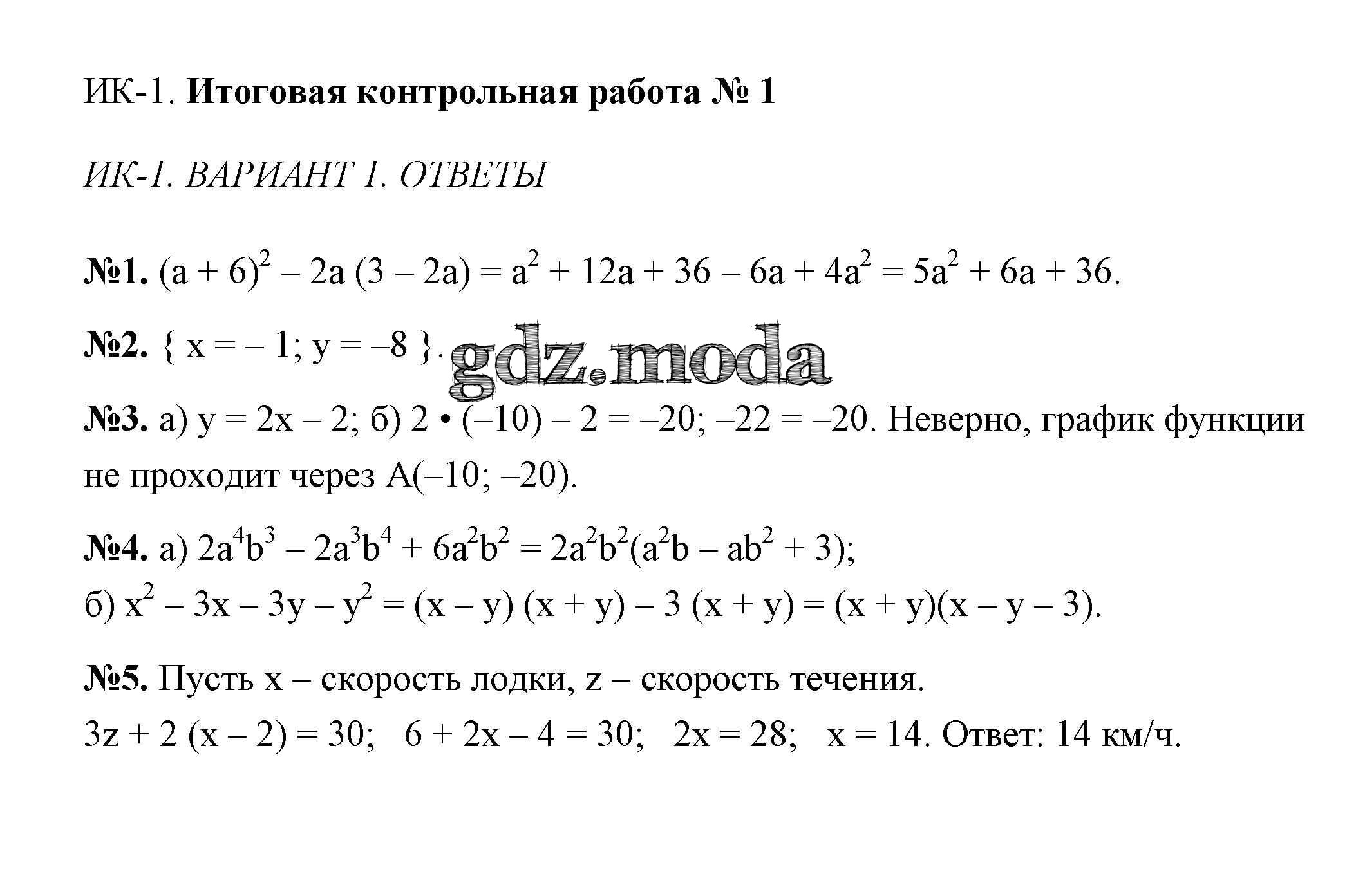 ГДЗ решение к заданию № ik-1 Алгебра 7 класс дидактические материалы Звавич Л.И. Просвещение 2012 ФГОС бесплатно на гдз.мода!