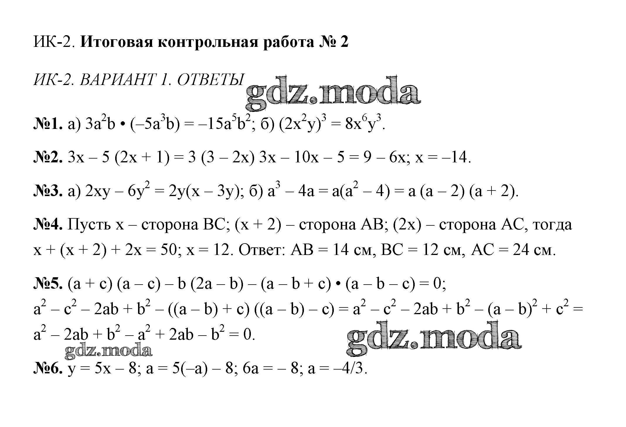ГДЗ решение к заданию № ik-2 Алгебра 7 класс дидактические материалы Звавич Л.И. Просвещение 2012 ФГОС бесплатно на гдз.мода!