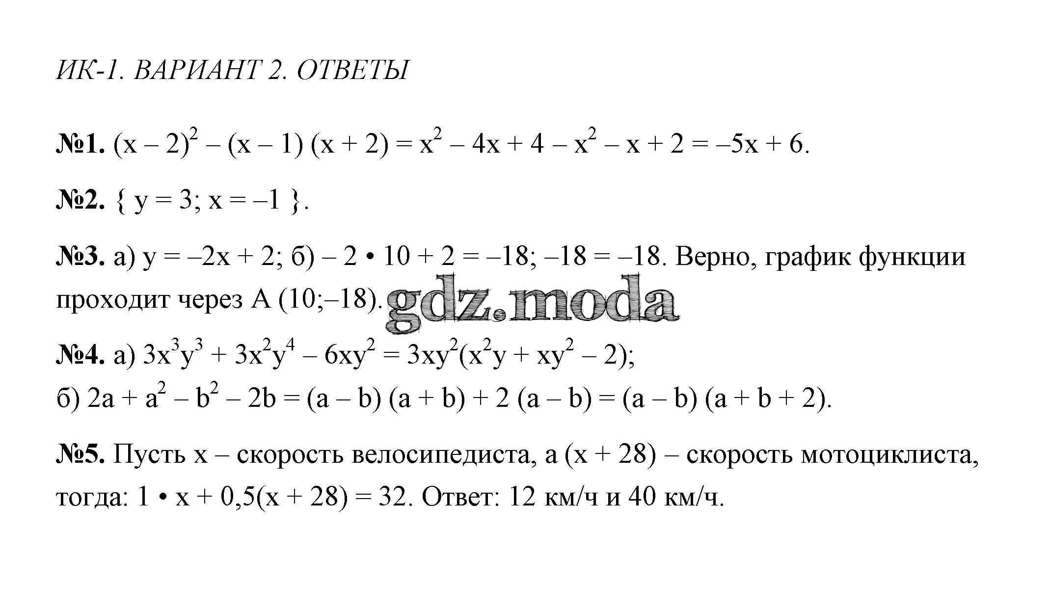 ГДЗ решение к заданию № ik-1 Алгебра 7 класс дидактические материалы Звавич Л.И. Просвещение 2012 ФГОС бесплатно на гдз.мода!