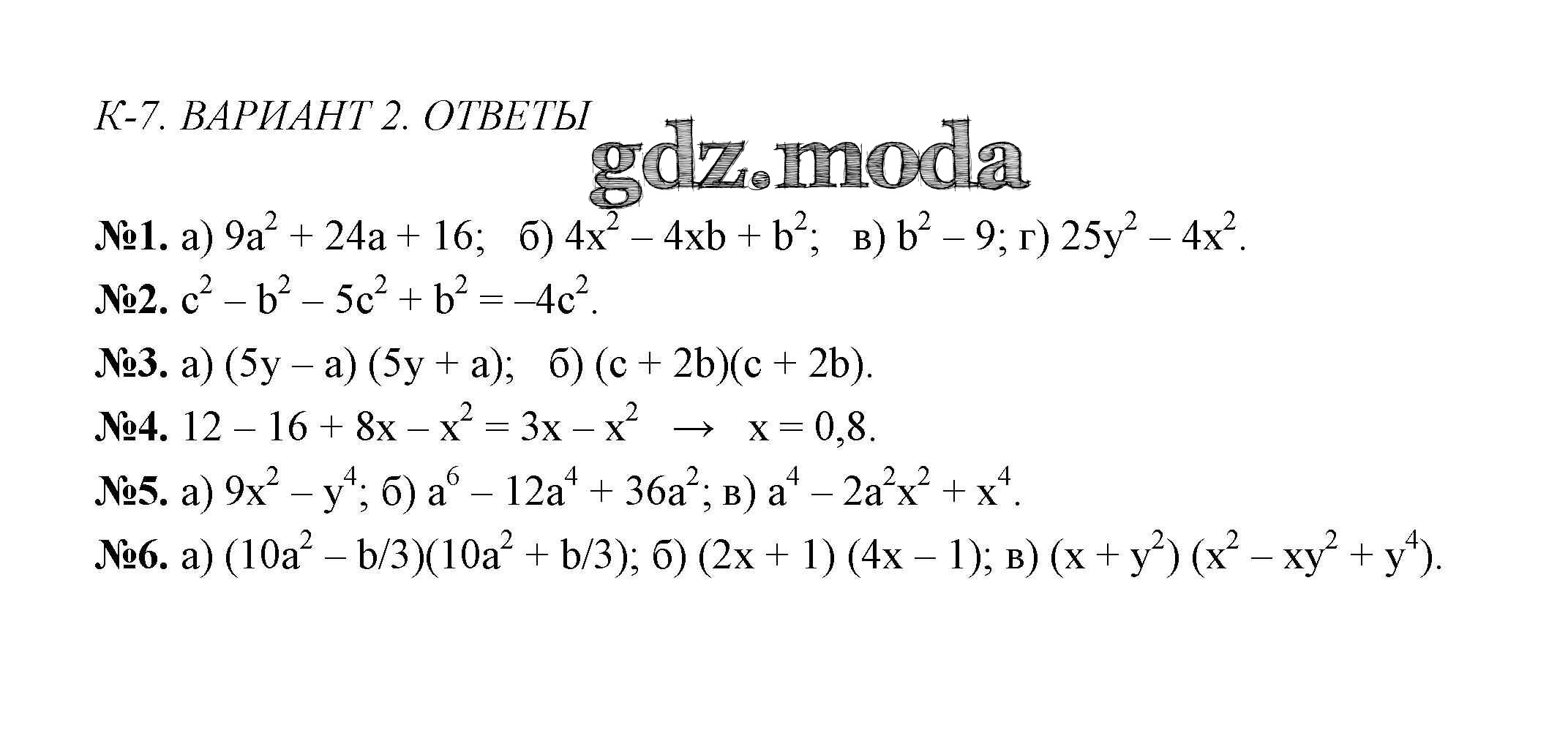 ОТВЕТ на задание № k-4 Дидактические материалы по Алгебре 7 класс Звавич