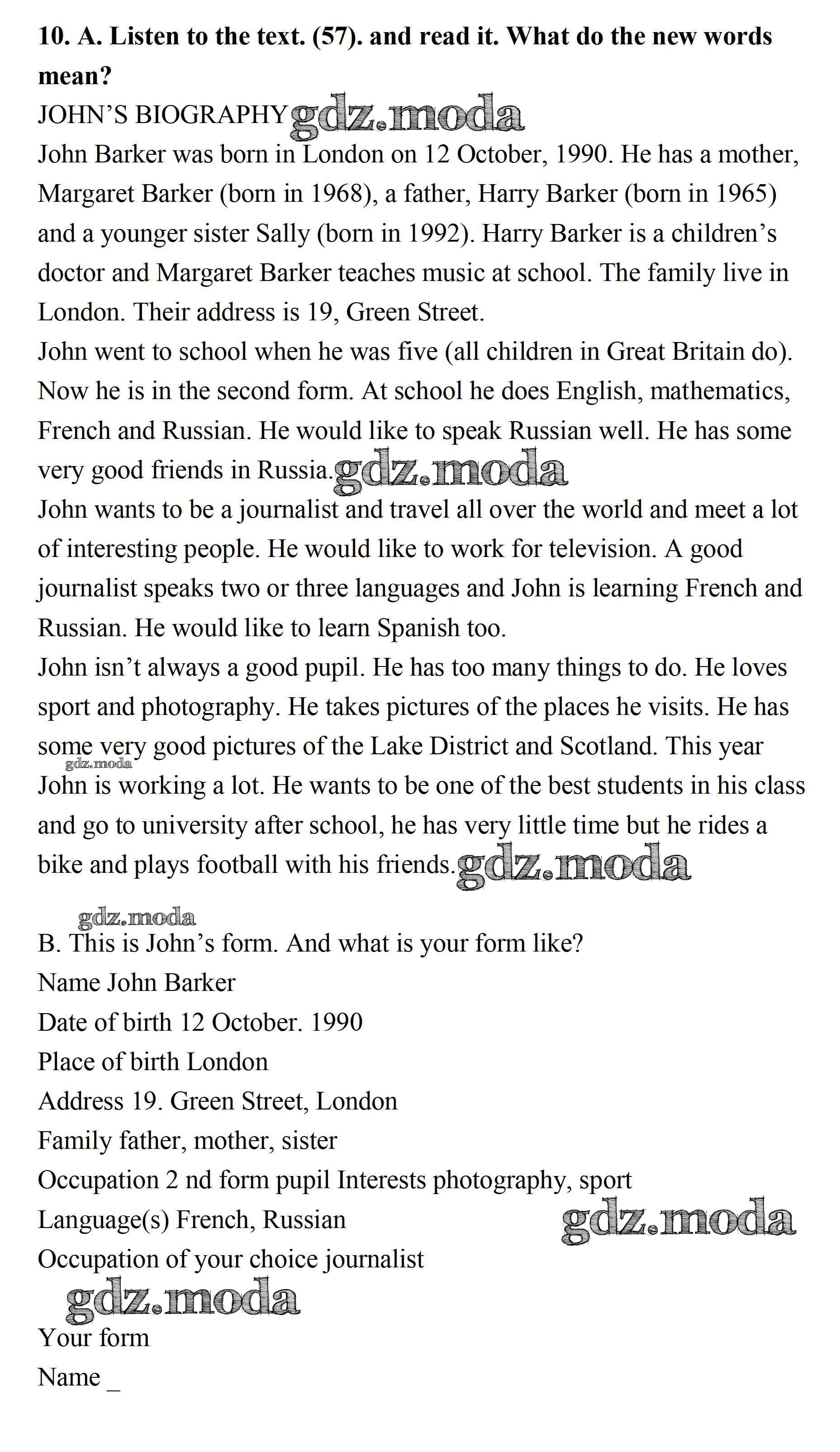 ОТВЕТ на задание № 10 Учебник по Английскому языку 7 класс Афанасьева Новый курс