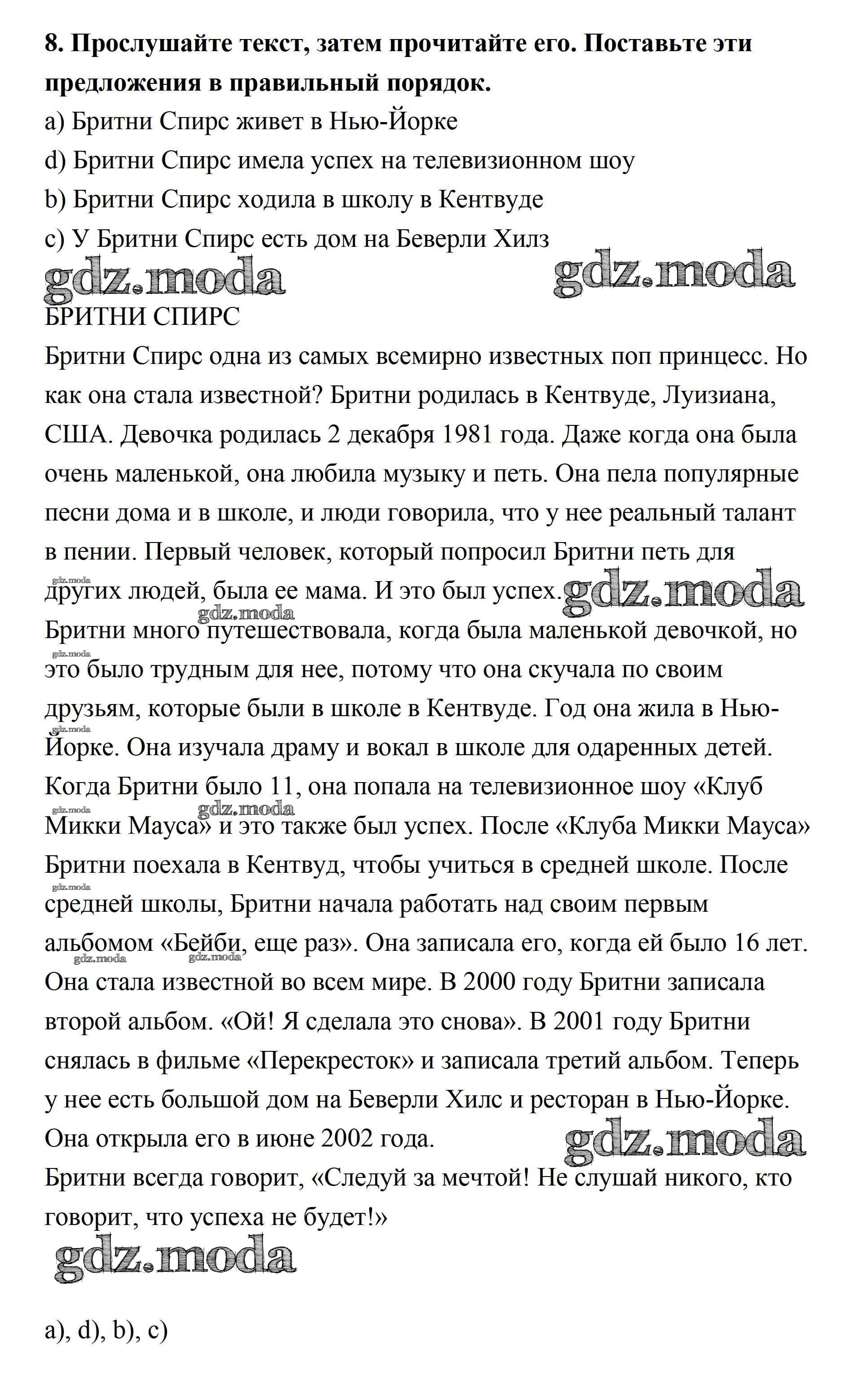 ГДЗ решение к заданию № 8 Английский язык 7 класс Афанасьева Михеева (Новый курс) Дрофа 2015 ФГОС бесплатно на гдз.мода!