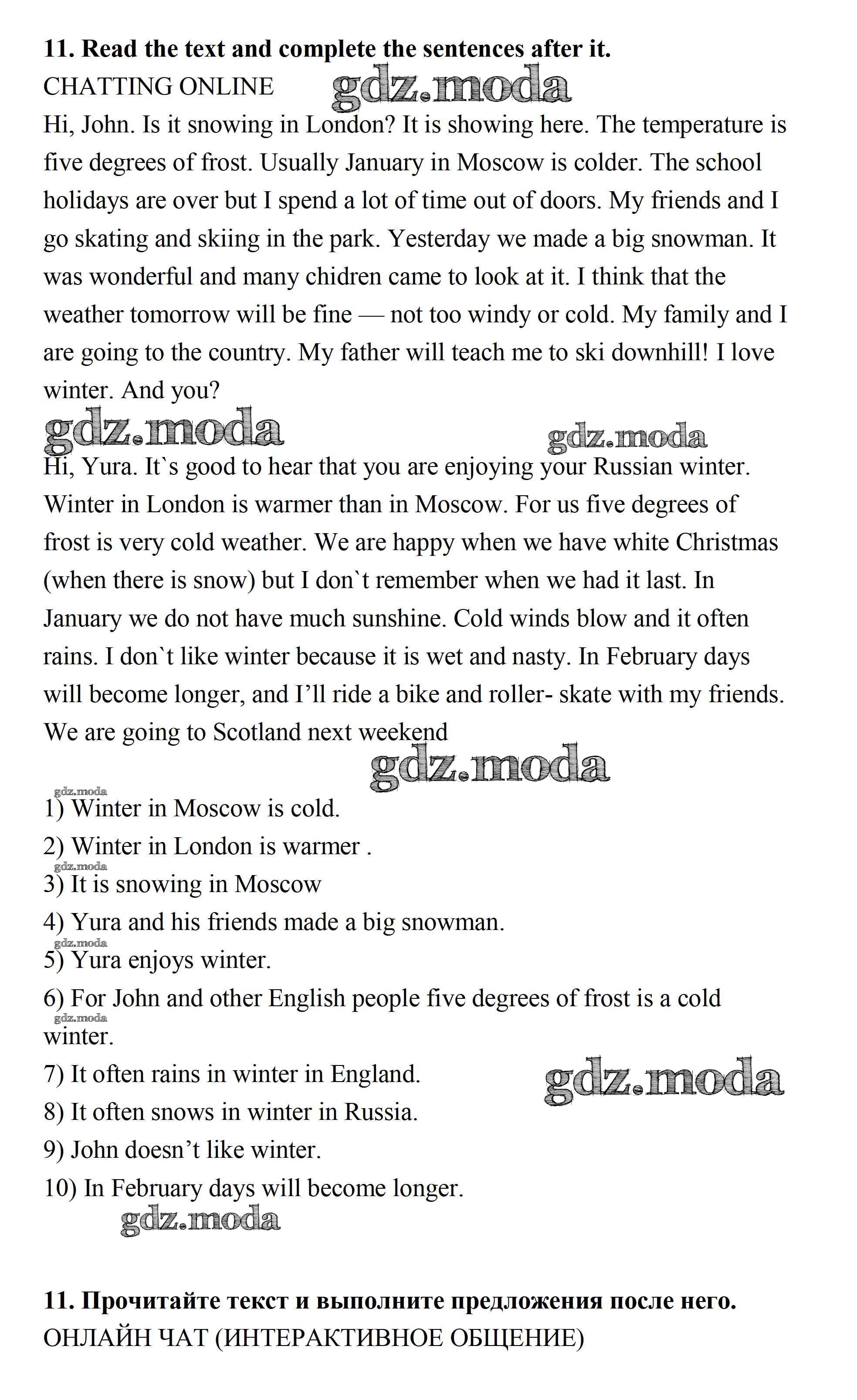 ГДЗ решение к заданию № 11 Английский язык 7 класс Афанасьева Михеева (Новый курс) Дрофа 2015 ФГОС бесплатно на гдз.мода!