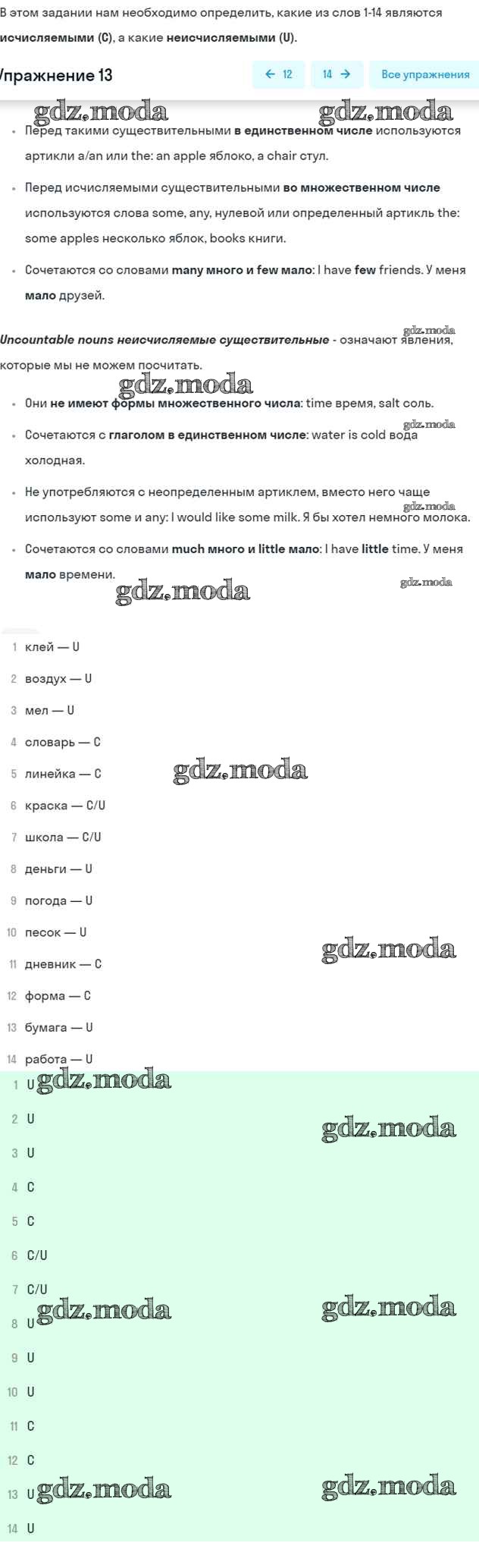 ОТВЕТ на задание № 13 Рабочая тетрадь по Английскому языку 7 класс Афанасьева Rainbow