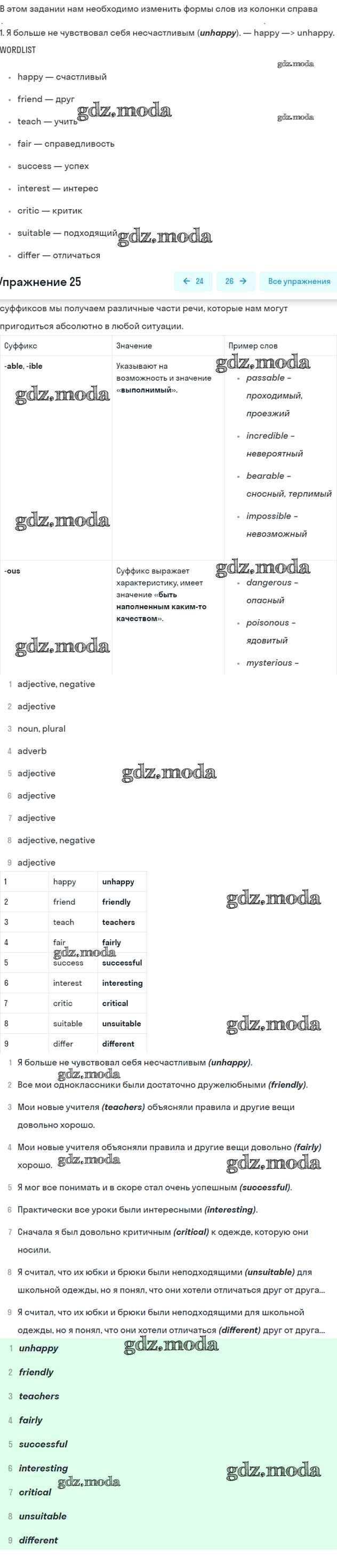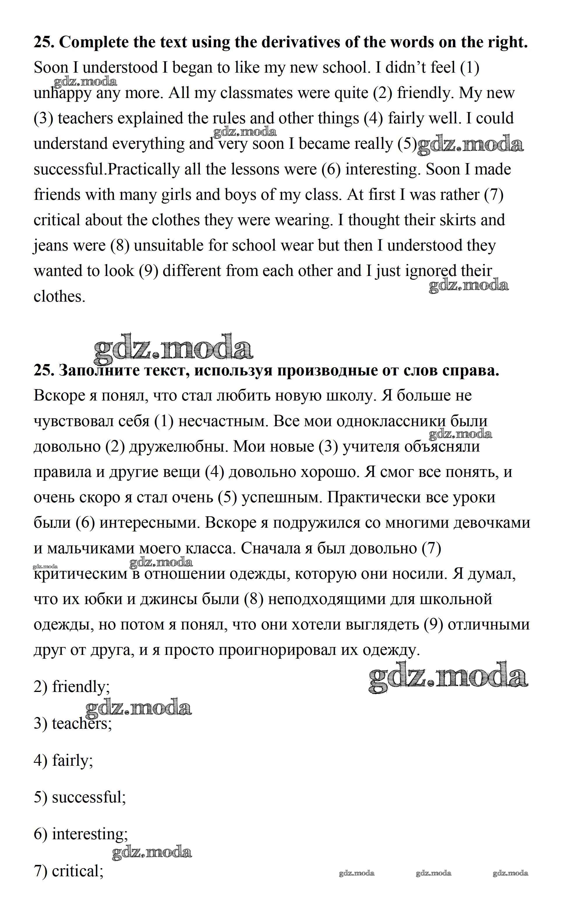 ОТВЕТ на задание № 25 Рабочая тетрадь по Английскому языку 7 класс Афанасьева Rainbow