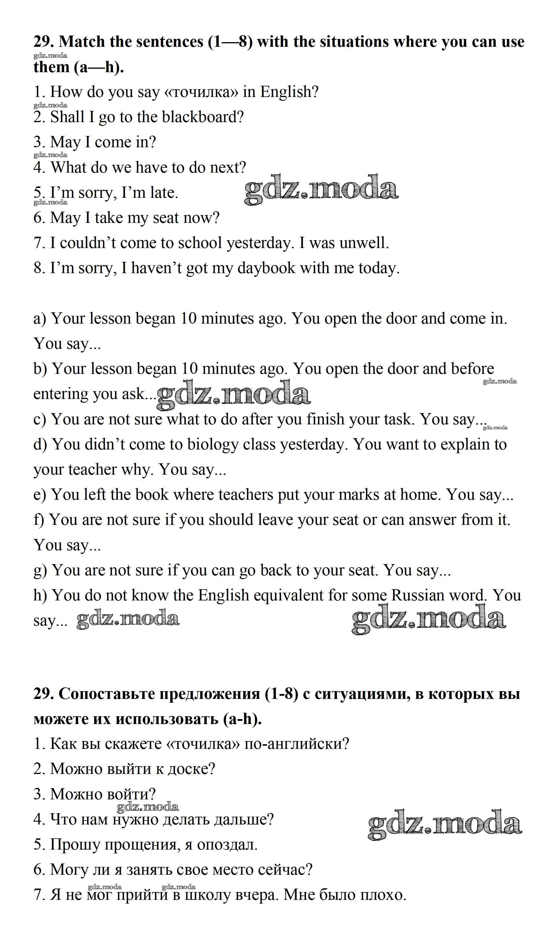 ОТВЕТ на задание № 29 Рабочая тетрадь по Английскому языку 7 класс Афанасьева Rainbow