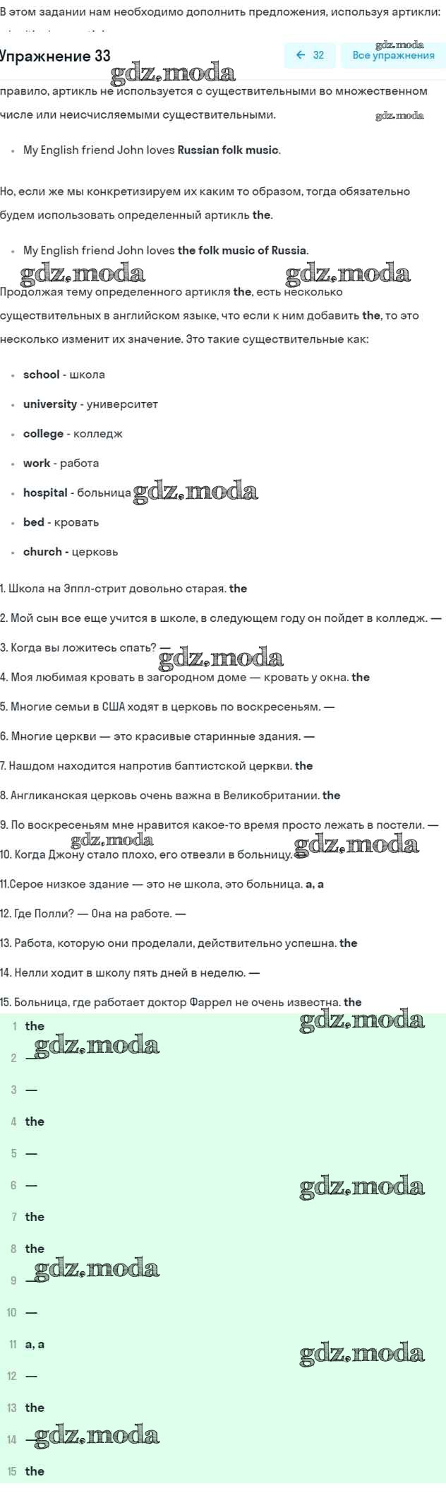 ОТВЕТ на задание № 33 Рабочая тетрадь по Английскому языку 7 класс Афанасьева Rainbow