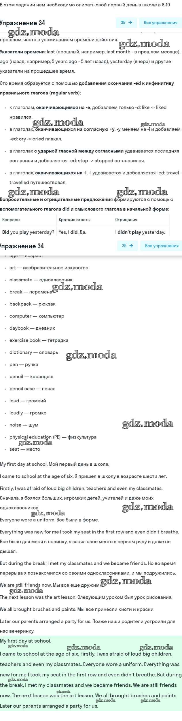 ОТВЕТ на задание № 34 Рабочая тетрадь по Английскому языку 7 класс Афанасьева Rainbow