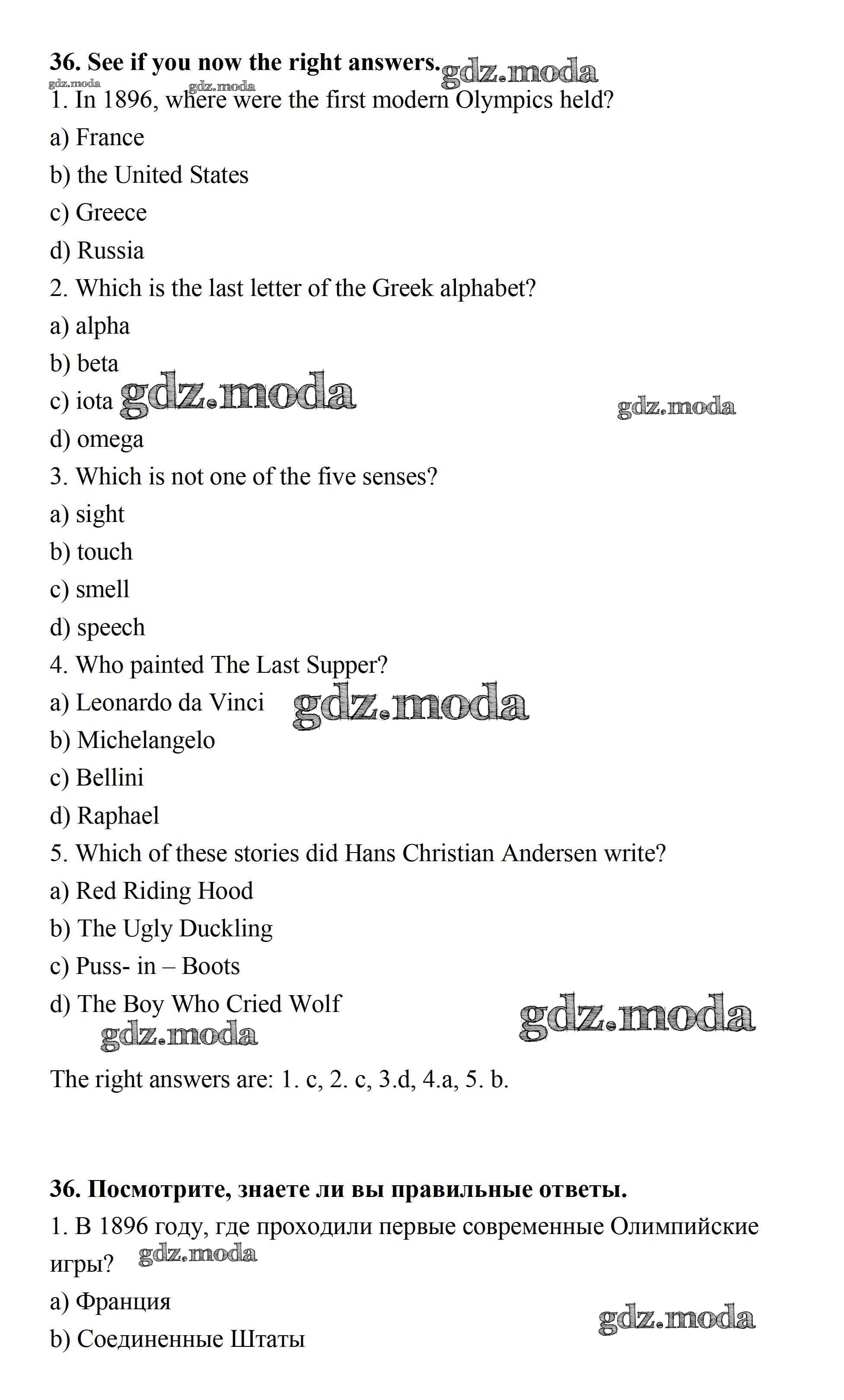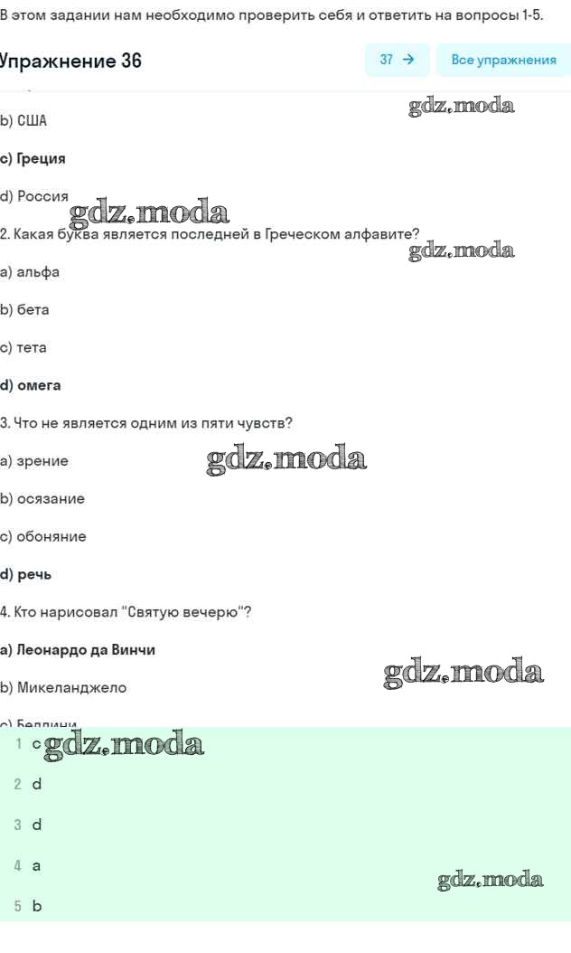 ОТВЕТ на задание № 36 Рабочая тетрадь по Английскому языку 7 класс Афанасьева Rainbow