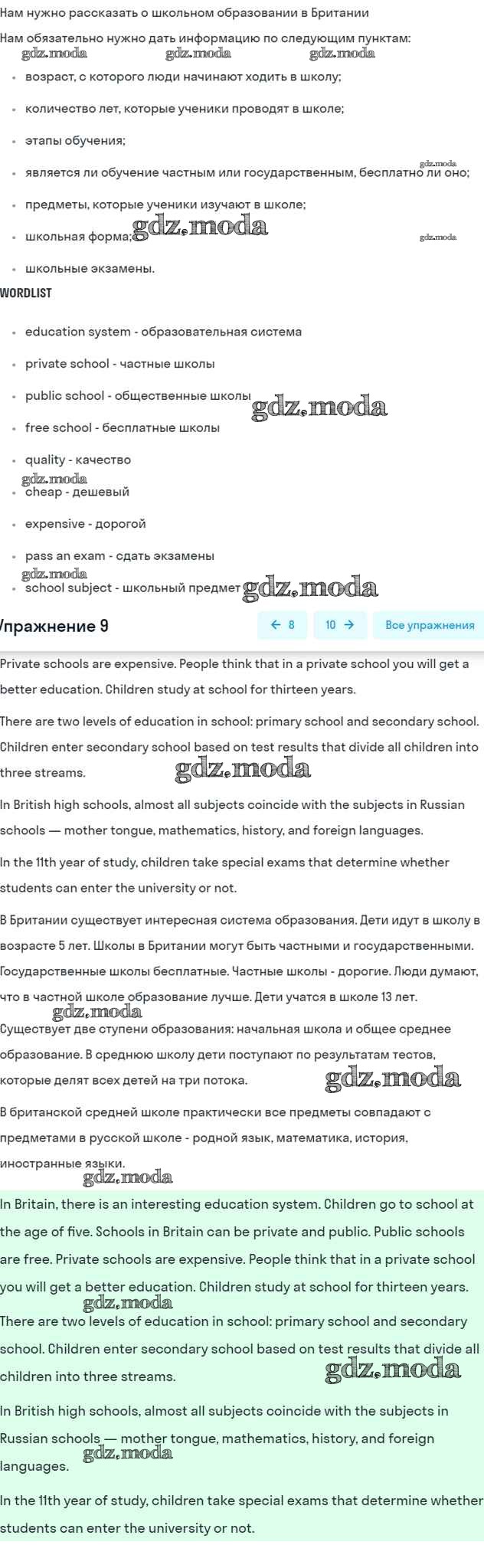 ОТВЕТ на задание № 9 Рабочая тетрадь по Английскому языку 7 класс Афанасьева Rainbow