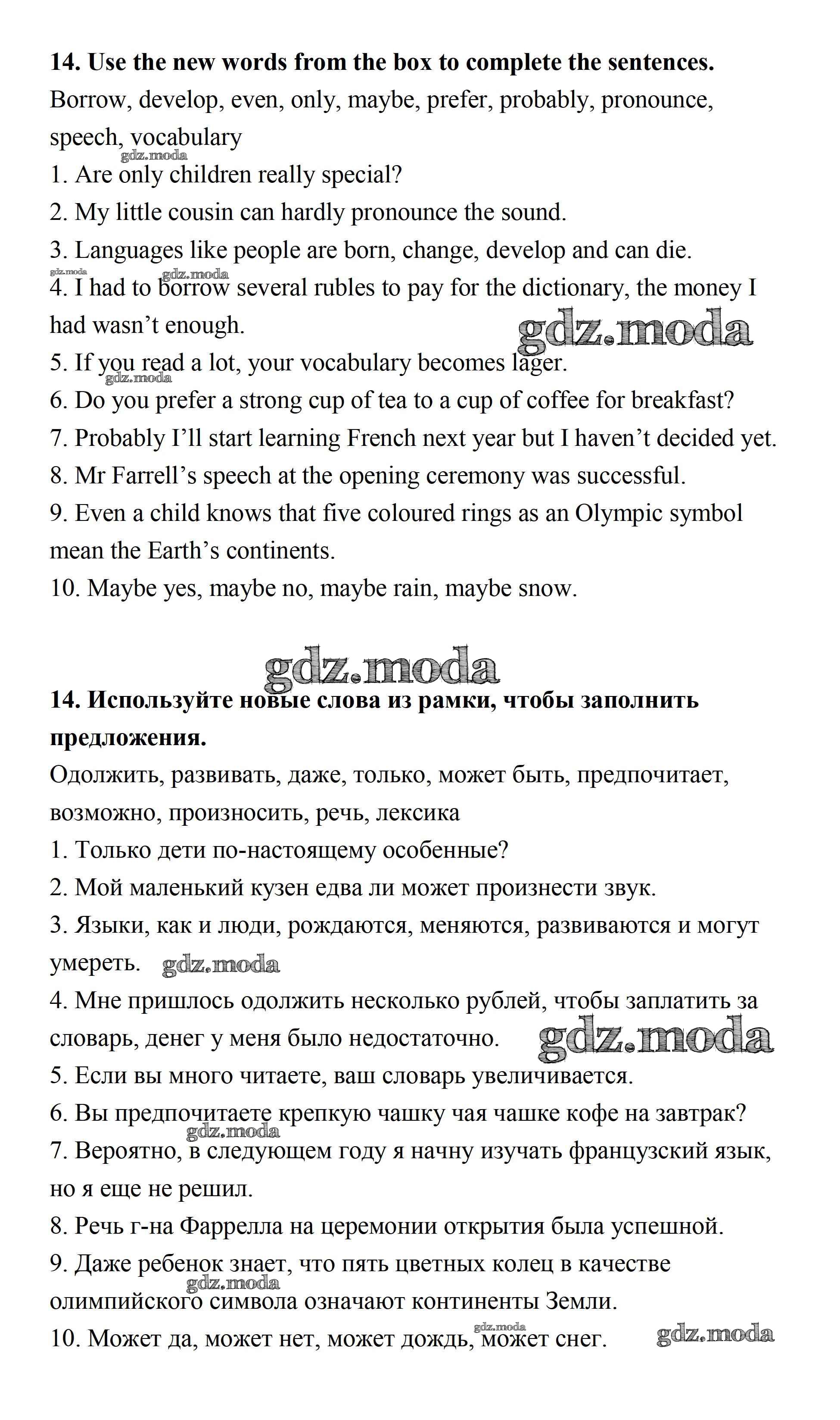 ОТВЕТ на задание № 14 Рабочая тетрадь по Английскому языку 7 класс Афанасьева Rainbow