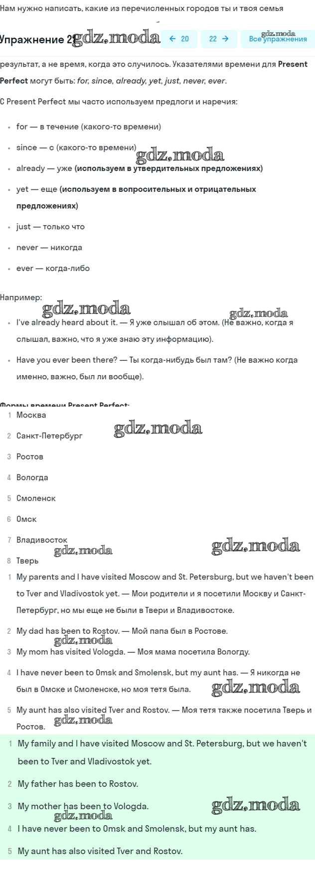ОТВЕТ на задание № 21 Рабочая тетрадь по Английскому языку 7 класс Афанасьева Rainbow