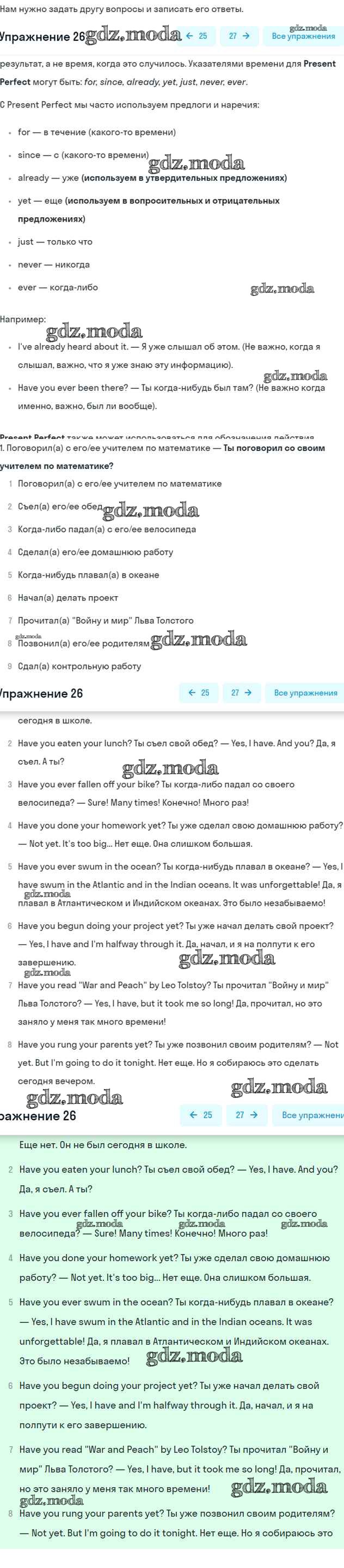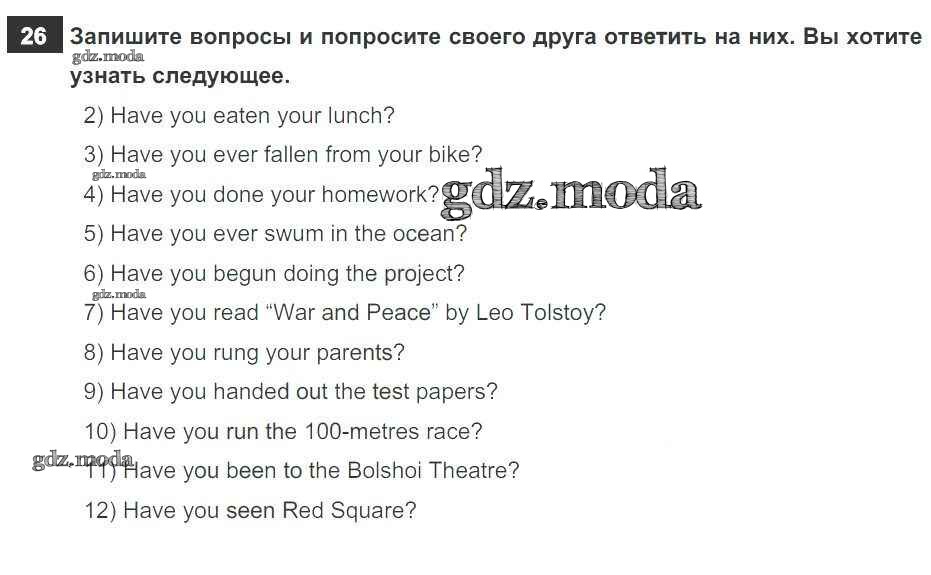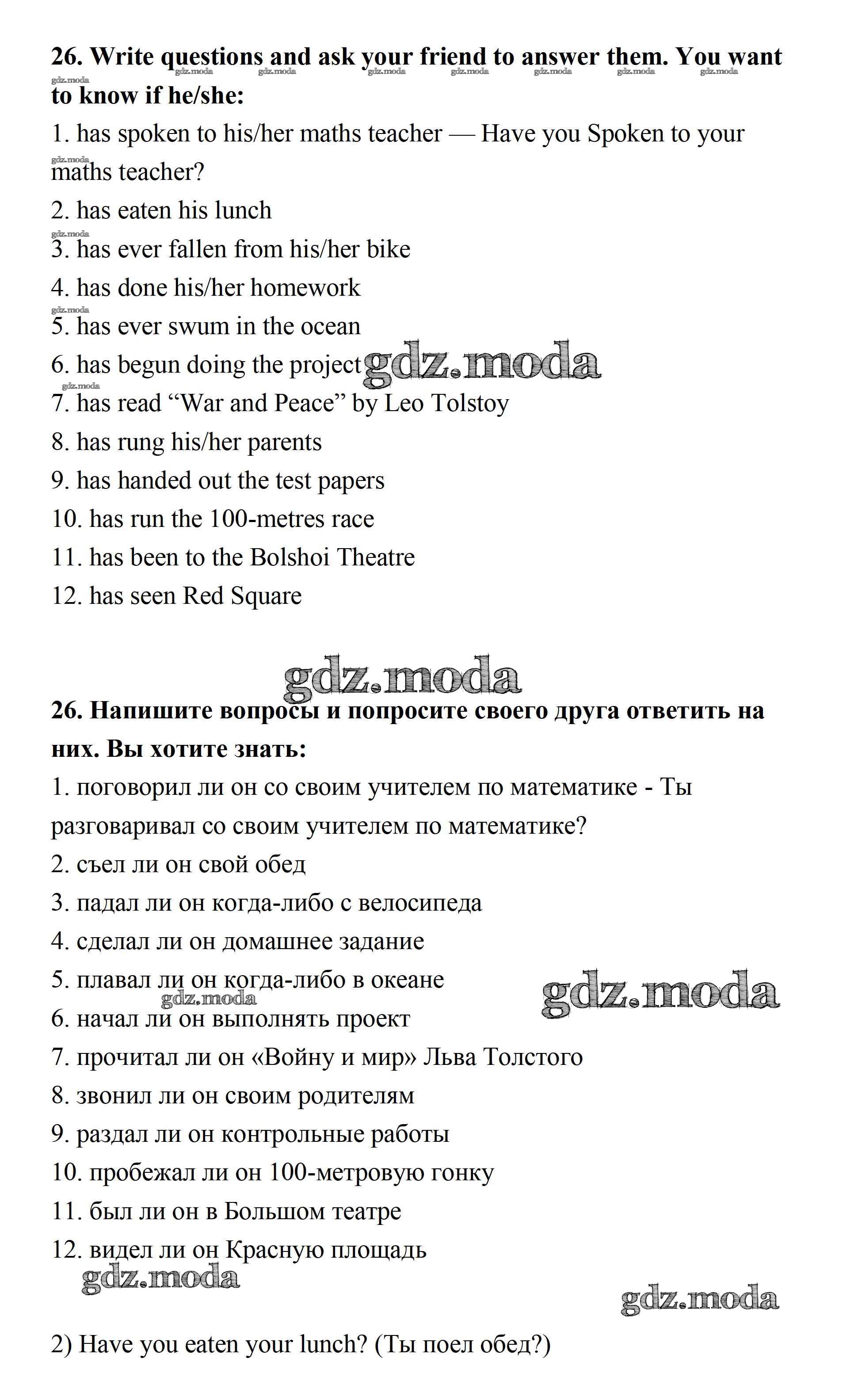 ОТВЕТ на задание № 26 Рабочая тетрадь по Английскому языку 7 класс Афанасьева Rainbow