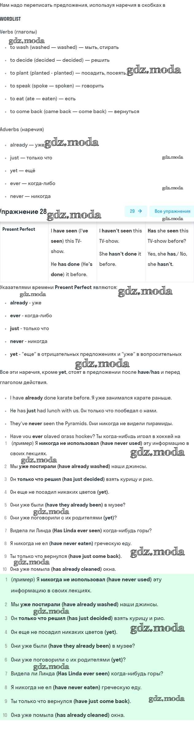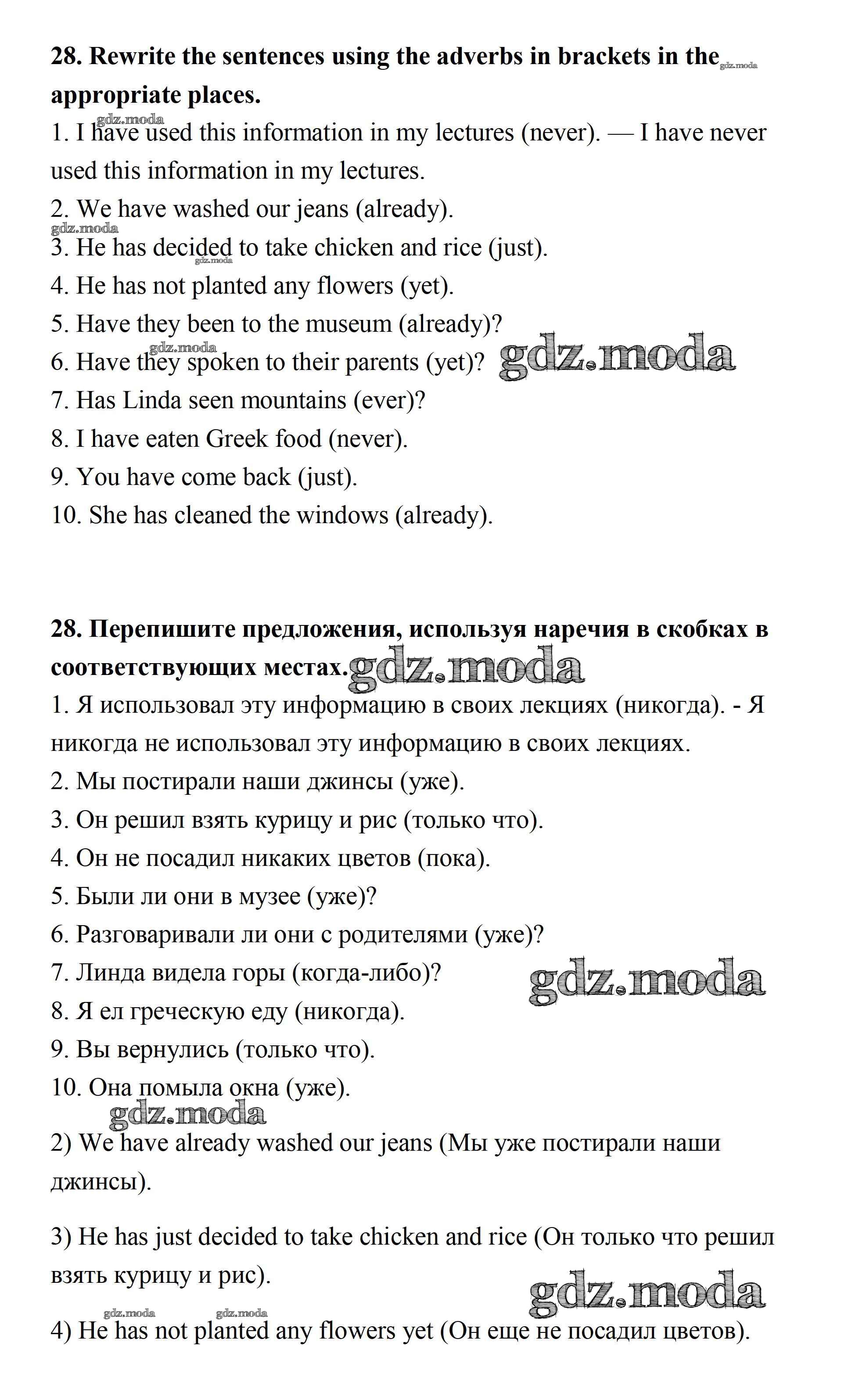 ОТВЕТ на задание № 28 Рабочая тетрадь по Английскому языку 7 класс Афанасьева Rainbow
