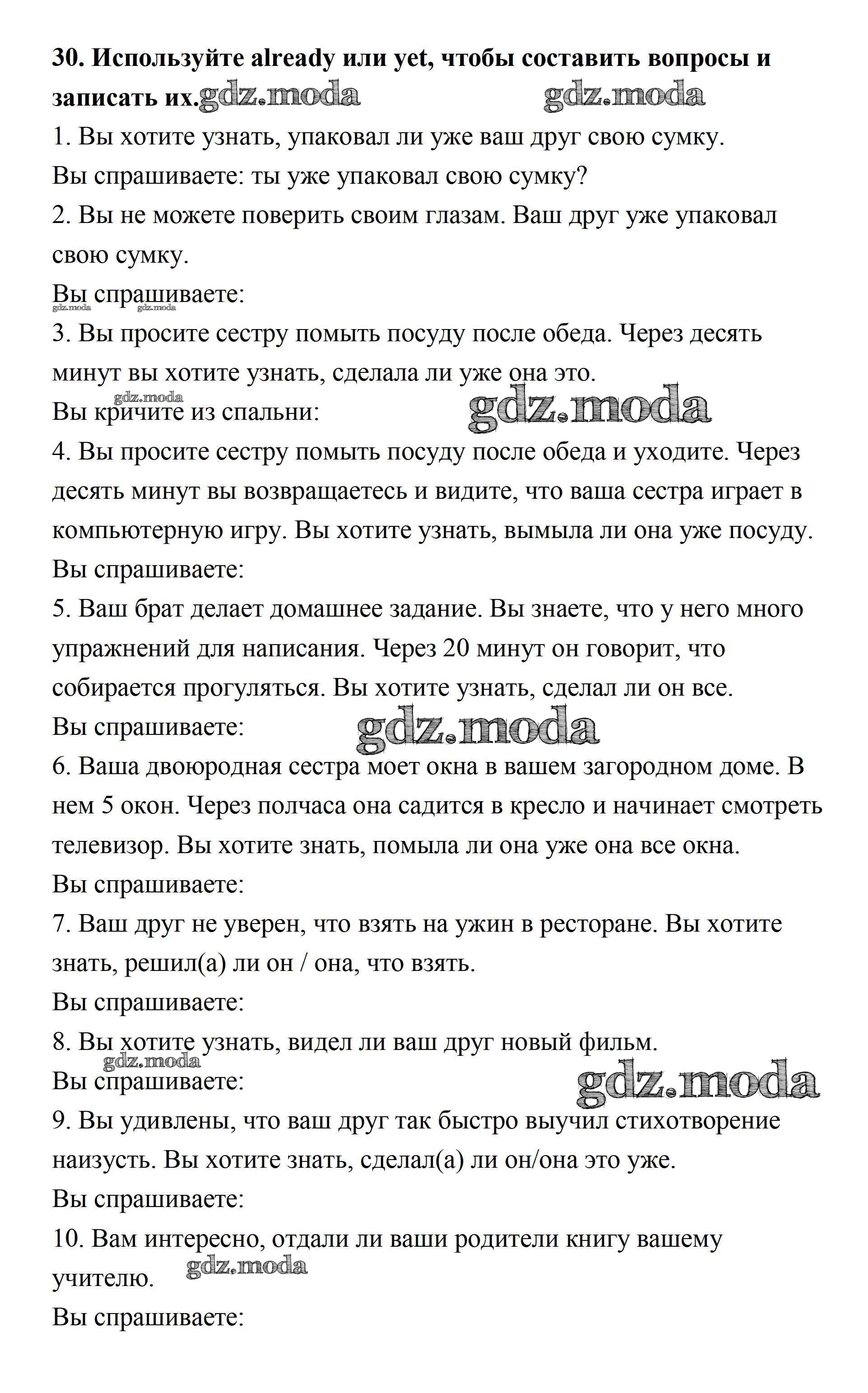 ОТВЕТ на задание № 30 Рабочая тетрадь по Английскому языку 7 класс Афанасьева Rainbow