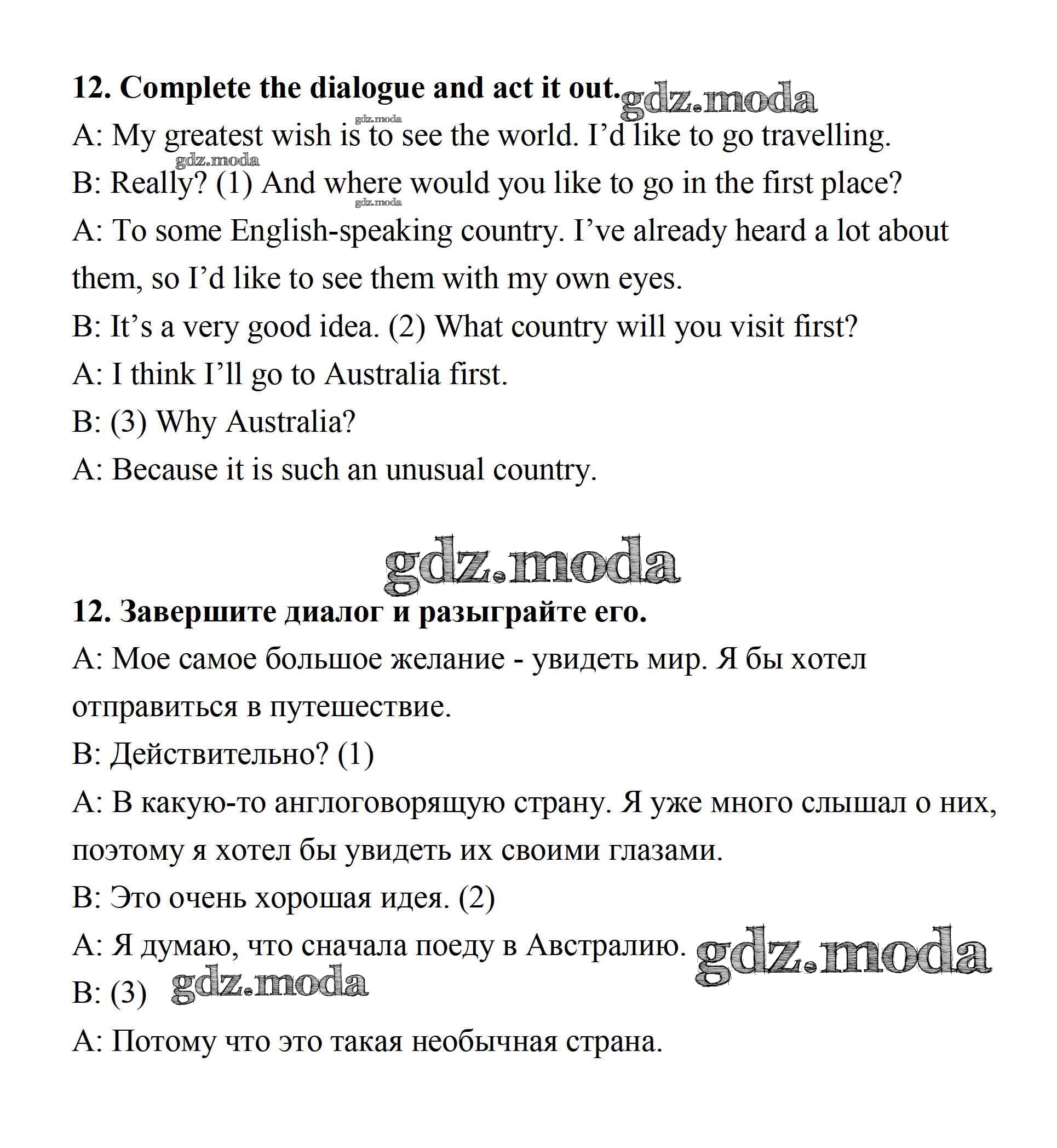 ОТВЕТ на задание № 12 Рабочая тетрадь по Английскому языку 7 класс Афанасьева Rainbow