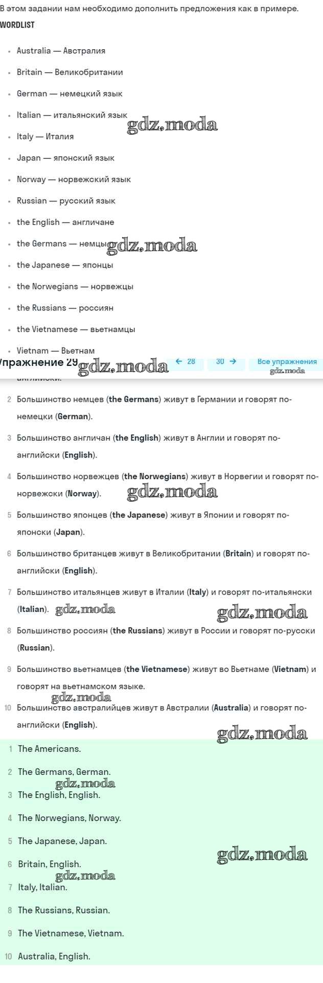 ОТВЕТ на задание № 29 Рабочая тетрадь по Английскому языку 7 класс Афанасьева Rainbow