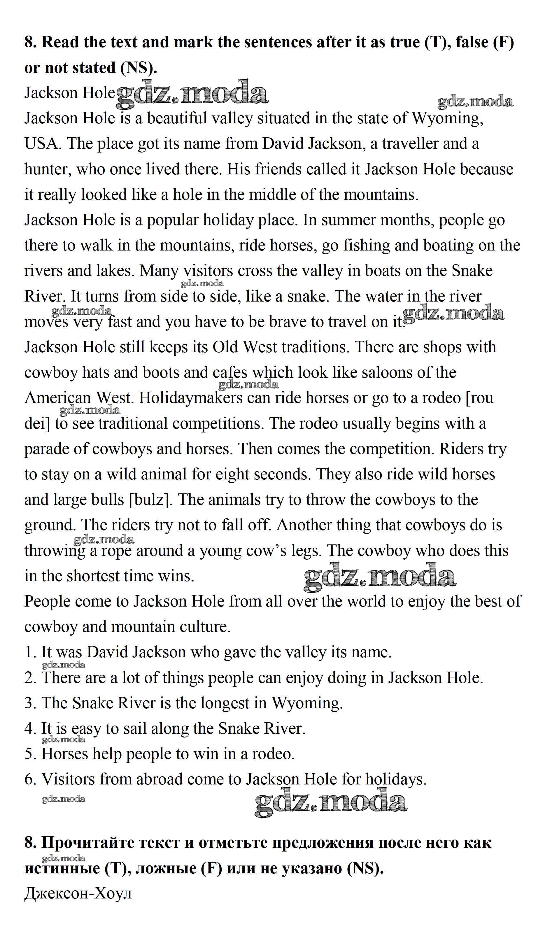ОТВЕТ на задание № 8 Рабочая тетрадь по Английскому языку 7 класс Афанасьева Rainbow