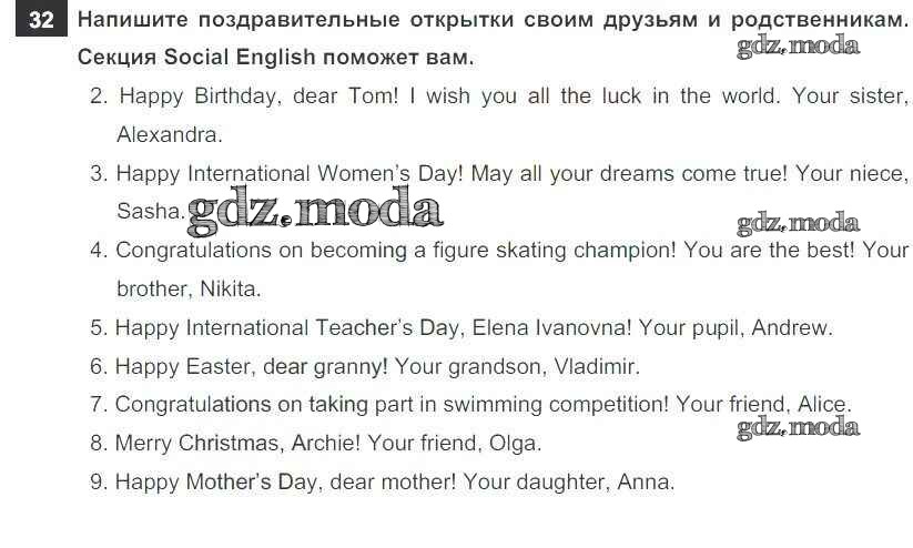 ОТВЕТ на задание № 32 Рабочая тетрадь по Английскому языку 7 класс Афанасьева Rainbow