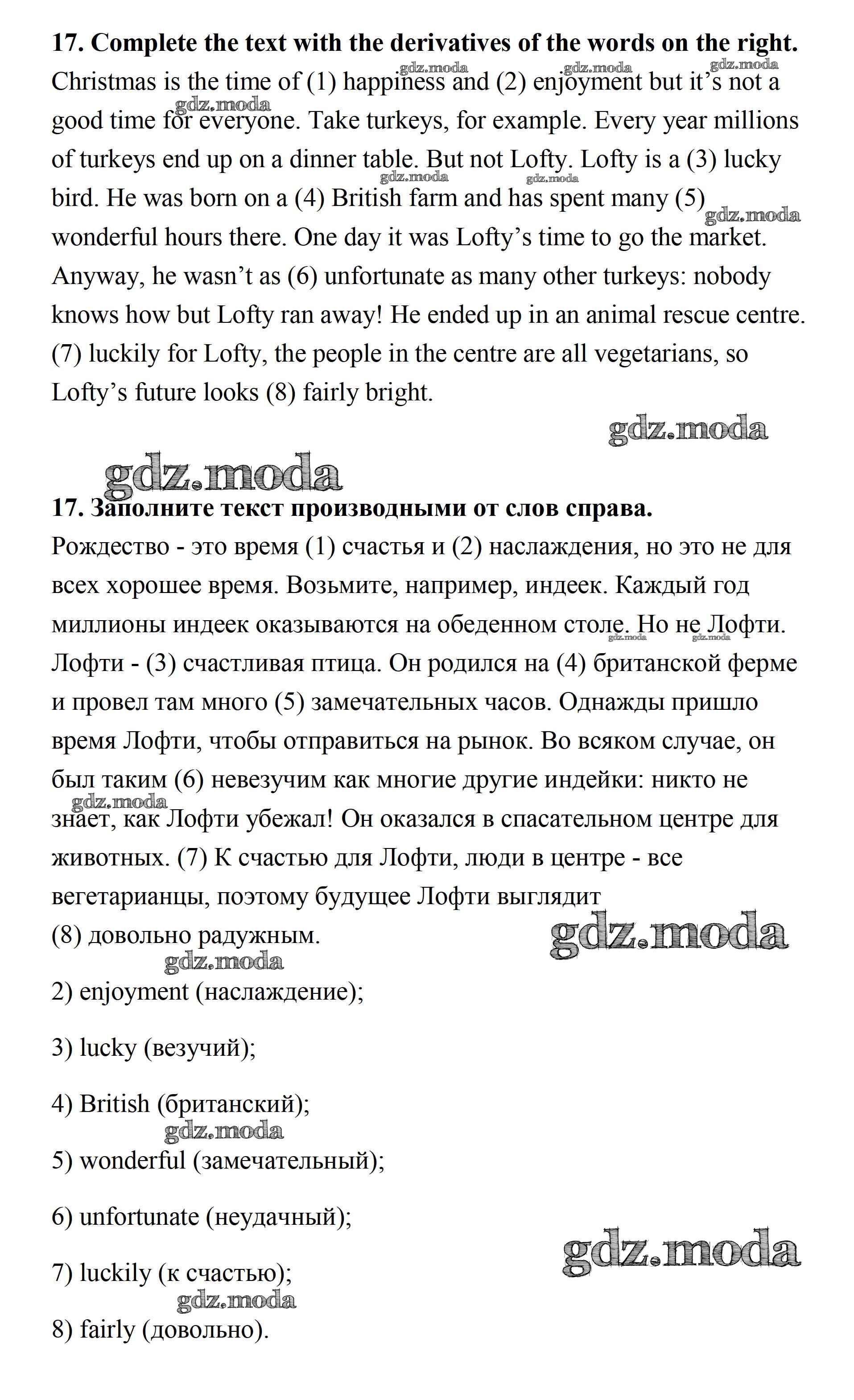 ОТВЕТ на задание № 17 Рабочая тетрадь по Английскому языку 7 класс Афанасьева Rainbow