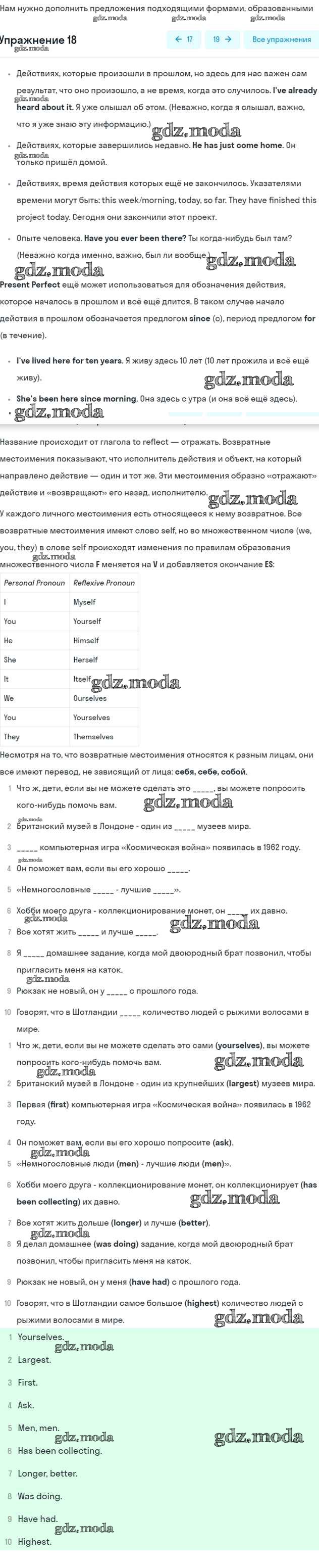 ОТВЕТ на задание № 18 Рабочая тетрадь по Английскому языку 7 класс Афанасьева Rainbow