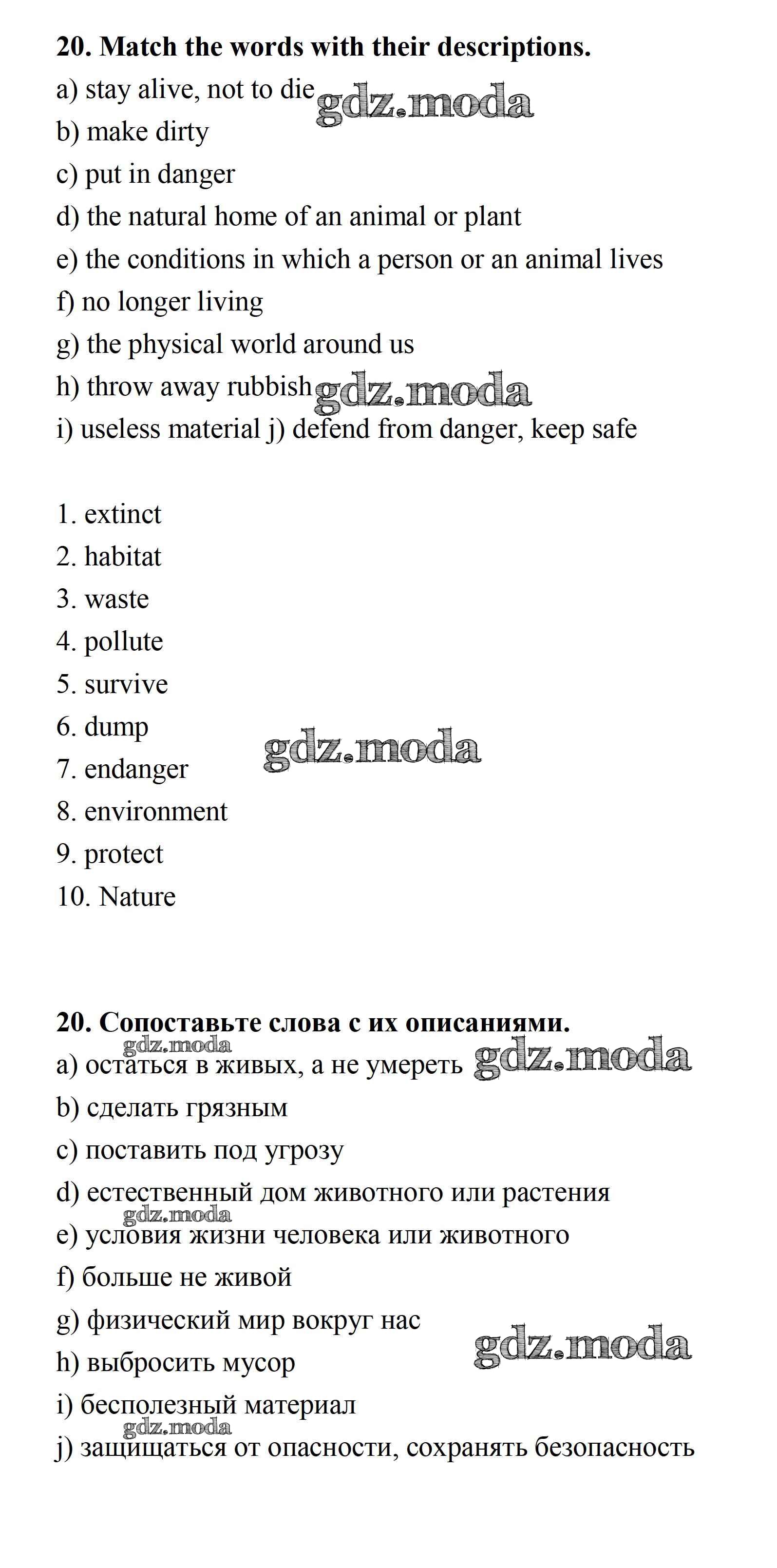ОТВЕТ на задание № 20 Рабочая тетрадь по Английскому языку 7 класс Афанасьева Rainbow