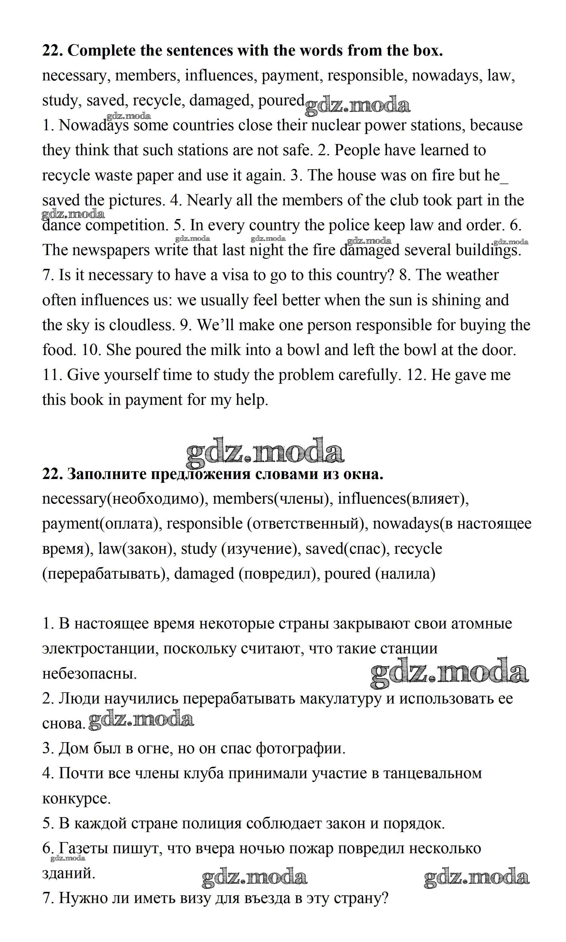 ОТВЕТ на задание № 22 Рабочая тетрадь по Английскому языку 7 класс Афанасьева Rainbow