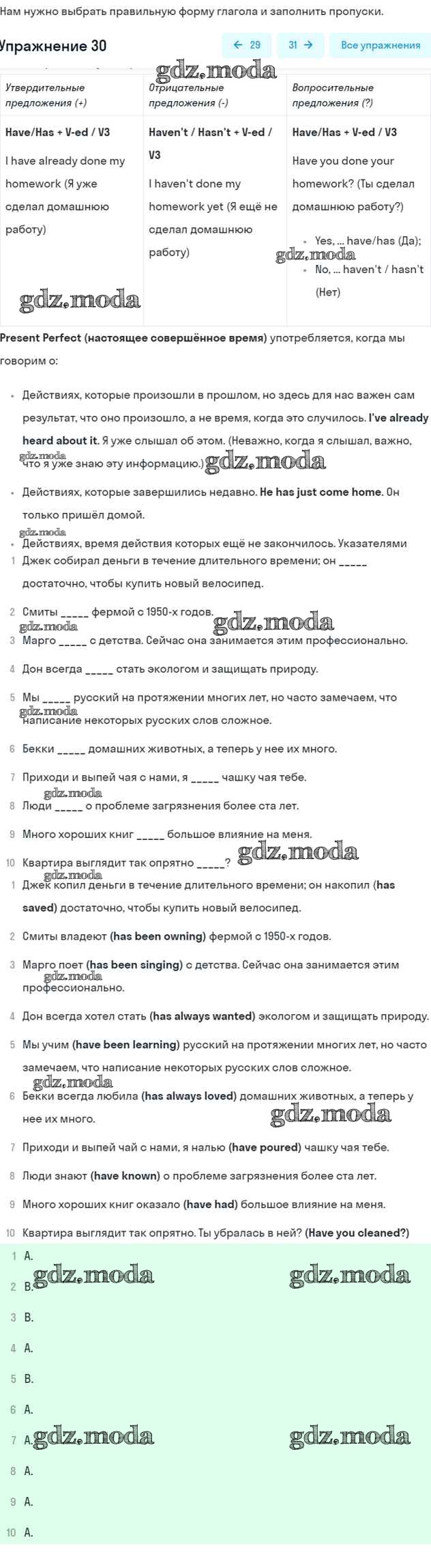 ОТВЕТ на задание № 30 Рабочая тетрадь по Английскому языку 7 класс Афанасьева Rainbow