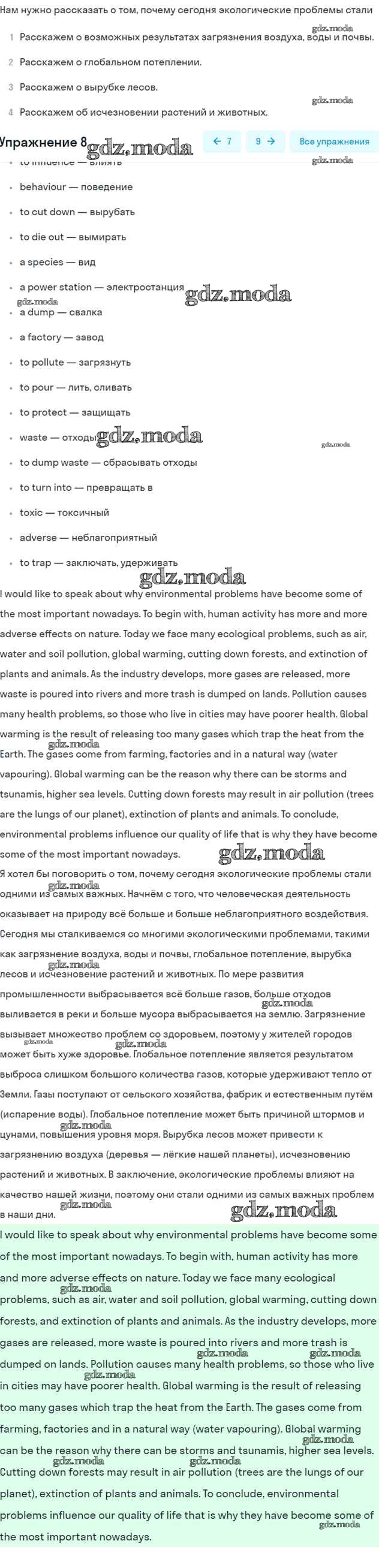 ОТВЕТ на задание № 8 Рабочая тетрадь по Английскому языку 7 класс Афанасьева Rainbow