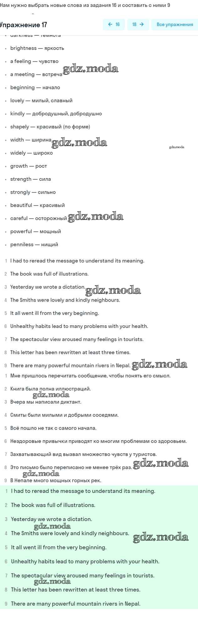 ОТВЕТ на задание № 17 Рабочая тетрадь по Английскому языку 7 класс Афанасьева Rainbow